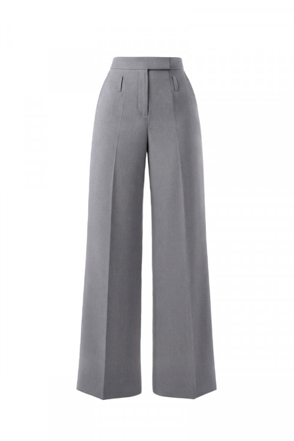 Костюм сірого кольору з жакетом з об'ємним низом і штанів низької посадки