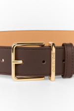 Ремінь шкіряний коричневого кольору з жовтою квадратною пряжкою