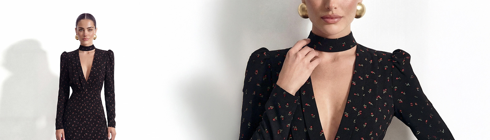 Сукня максі чорного кольору у троянди з глибоким вирізом