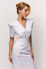 Сукня міді молочного кольору у рожеві квіти в комплекті з баскою